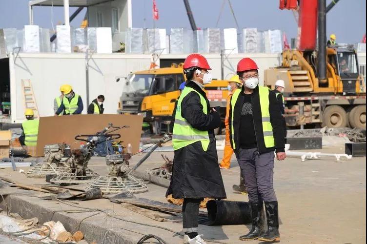 張光(右)在“火神山”項目現場協調施工