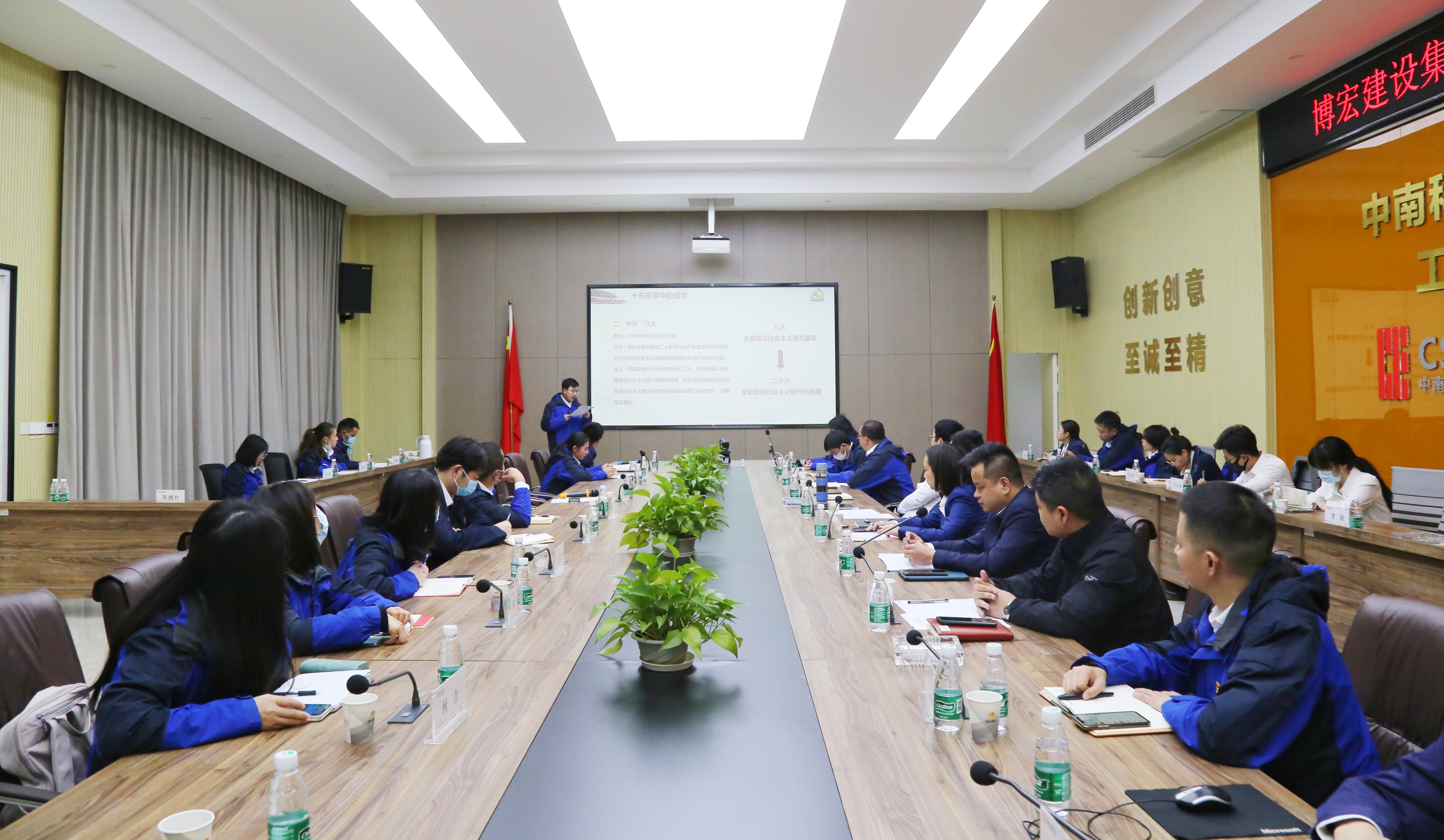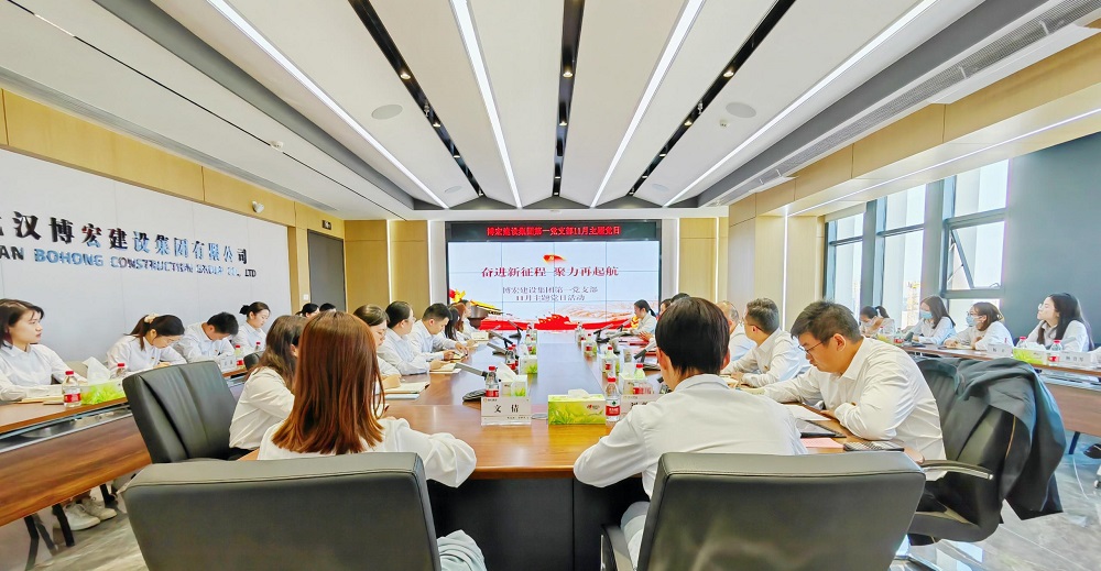 為深入學習貫徹黨的二十大精神,博宏建設集團第一黨支部、第二黨支部分別于公司會議室及中南科研設計中心項目會議室舉辦了主題為“奮進新征程,聚力再起航”的11月主題黨日活動,全體黨員參會。