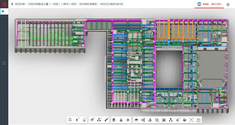 研究生期間彭迎研究的方向是BIM技術土建方向,但工作需要盡快上手的是BIM技術機電方向,一時讓她有點手足無措,“有問題先嘗試解決,辦法總比困難多”踏實肯干的她選擇了迎難而上,白天她跟著師傅們不厭其煩地穿梭于現場的各個樓棟,在工作過程中多看、多問、多記、多學,晚上回到宿舍,她通過閱讀大量BIM機電方向相關書籍以及上網課等方式自學相關知識,有時為了弄懂一個問題常常奮戰到深夜。從入門到逐漸架構起整個知識體系,彭迎經歷了半年的時間。在自學期間,她遇到了很多困難和瓶頸,但因為熱愛,從未想過放棄。“那段時間很累但是也很充實,每天都能學習到新的東西,讓我對機電的了解越來越深入,也越發體會到了BIM的魅力??粗约豪L制的BIM圖紙粘貼在了施工墻上,工人按照圖紙可以搭建出符合標準的砌體,心中的喜悅是無法用語言描述的。”回憶起那段時光時,她臉上總是帶著微笑。理論上的認真鉆研,現場中的建模實踐,彭迎的專業技術在不懈努力中愈見純熟,在負責總部大樓地上部分機電BIM工作過程中考取了BIM二級設備證,也和同事們一起獲得了多項國家級、省市級BIM獎項,熱愛與進取讓她一次次品嘗到了成功的碩果。