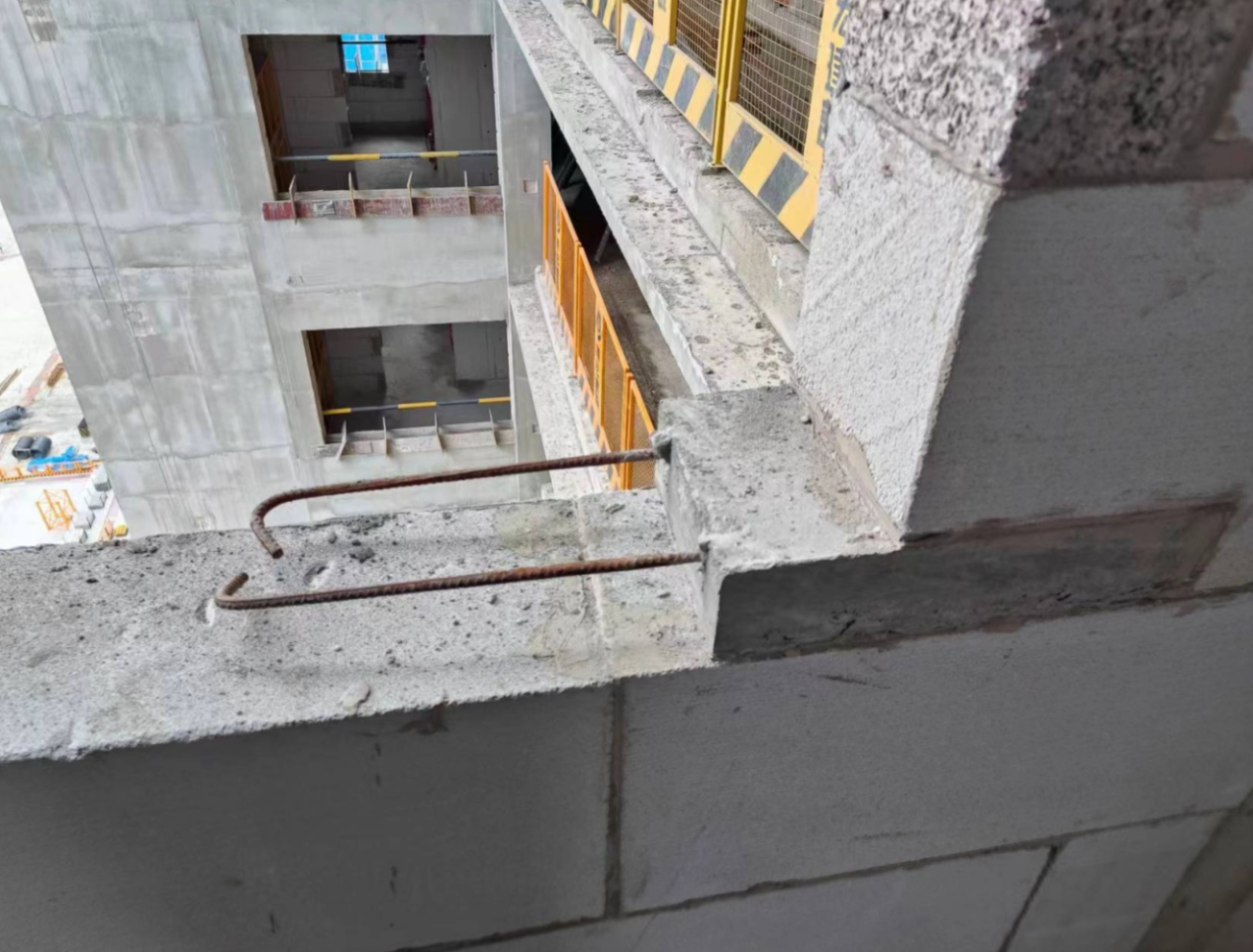 為保證各工序穿插施工的正常運行,在進行外墻砌體穿插施工時,常規外墻砌體施工工序為先砌筑至窗臺位置,待支模澆筑窗臺壓頂完成并拆模后才可以繼續砌體砌筑至頂。因主體結構每層施工時間較短,如按正常工序依次施工,無法滿足外墻砌體、外抹灰工序的穿插施工要求,且工人砌體施工時易在壓頂位置留缺口,直接向上砌筑至頂,形成工序倒置,留下窗臺壓頂后澆筑的滲漏隱患。