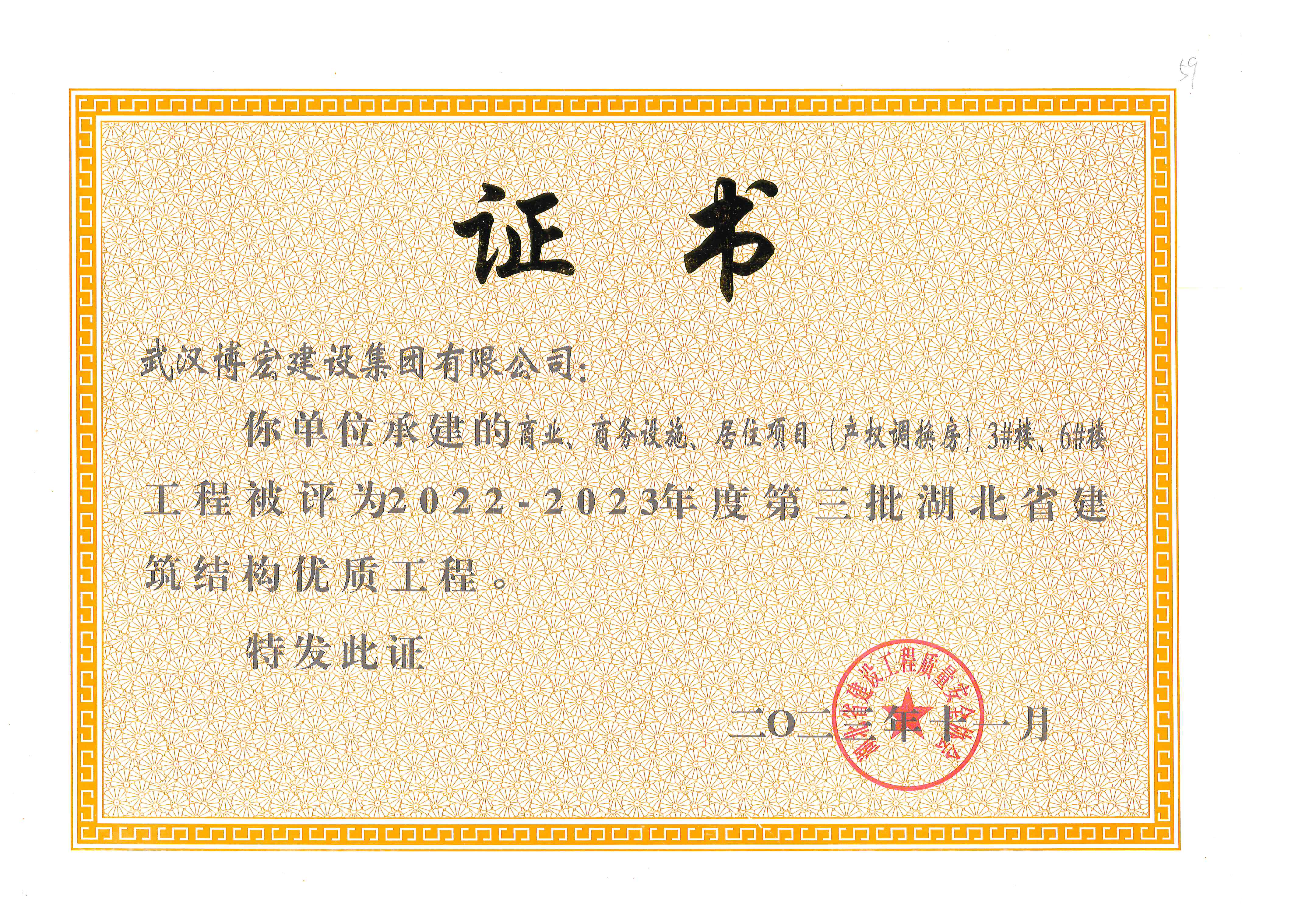 此次六項工程同時斬獲湖北省建筑結構優質工程獎,進一步彰顯了公司優異的質量管理水平和不斷提高的綜合實力,對提升公司核心競爭力、增強品牌影響力具有重要的意義。后續,博宏建設集團將繼續秉承“高起點策劃、高標準建設、高效能管理”的方針,筑牢質量基礎,提升質量效益,匠心打造更多優質工程。
