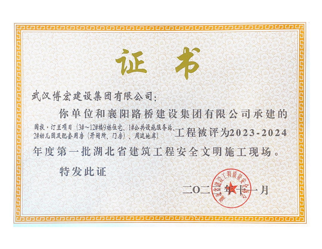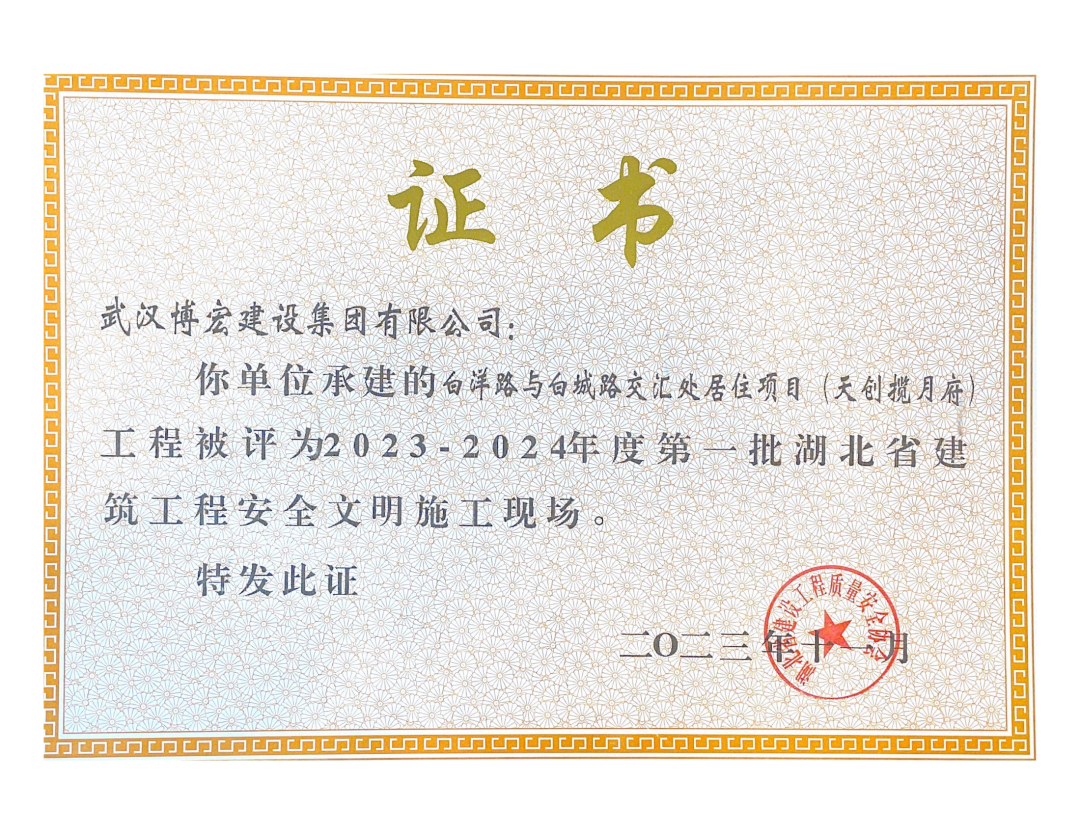 此次,公司8項工程獲此殊榮,是對博宏建設集團品牌實力的認證,更是鞭策博宏人載譽前行的動力。未來,博宏建設集團將繼續高標準、嚴要求做好安全文明工作,不斷提升安全文明施工標準化水平,打造更多優質工程、放心工程、精品工程,為公司高質量發展提供堅實保障,為拓展城市幸??臻g作出積極貢獻!