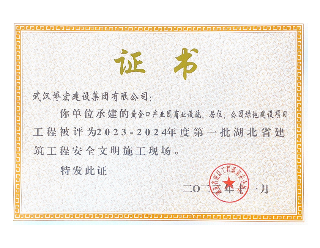 喜報!博宏建設集團8項工程斬獲“湖北省建筑工程安全文明施工現場”