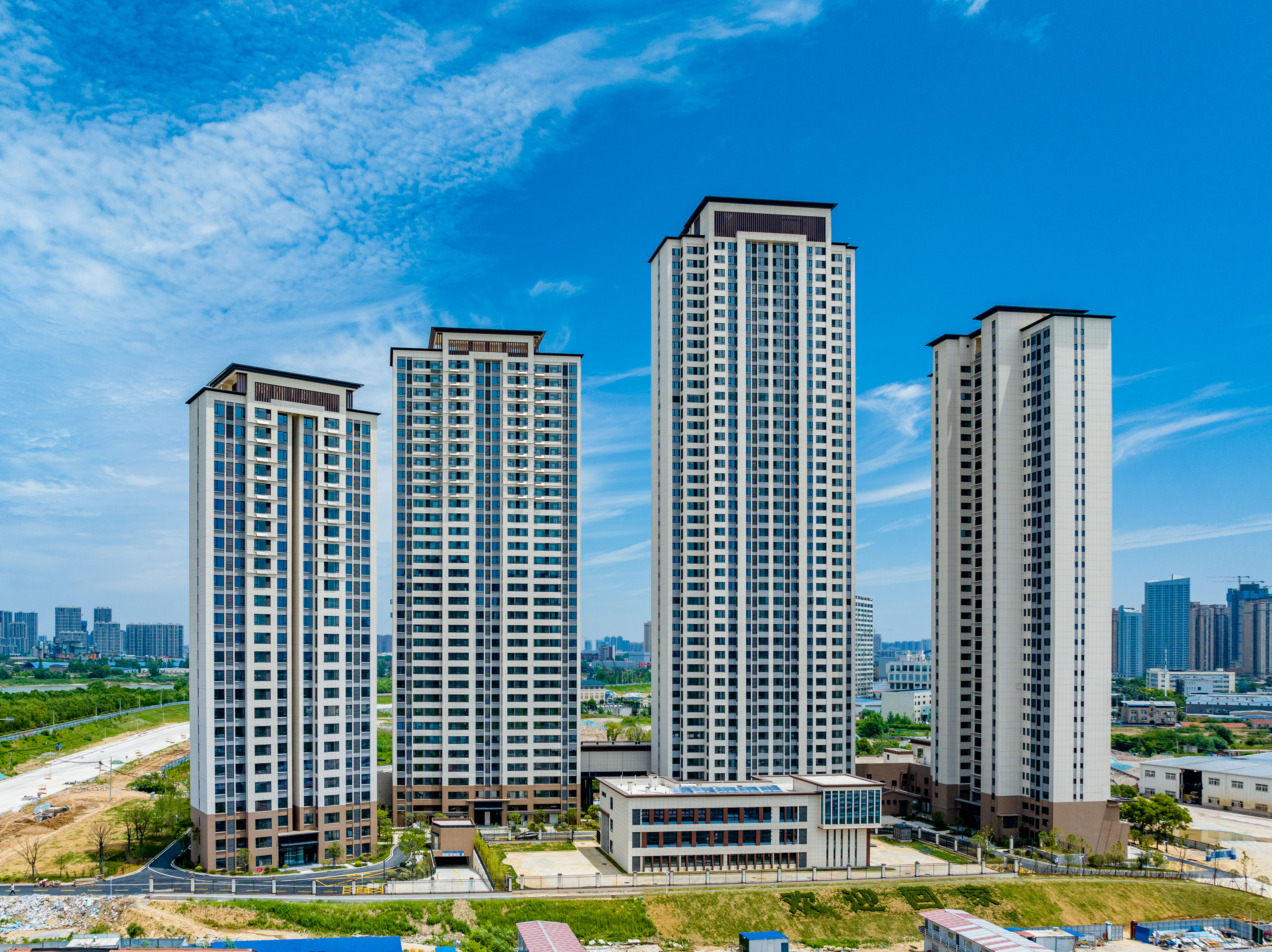 居住項(xiàng)目(四臺(tái)村還建房B地塊)位于湖北省武漢市漢陽(yáng)區(qū)四臺(tái)三路與四臺(tái)北路交匯處以南,小區(qū)一線臨江,由1~4#樓(25層~42層高層住宅)、幼兒園(3層)組成。各棟單體由整體地下室相連,地下室為2層,局部為1層。項(xiàng)目建成后將有利于改善周邊居民的生活條件,提升城市功能形象品質(zhì)。